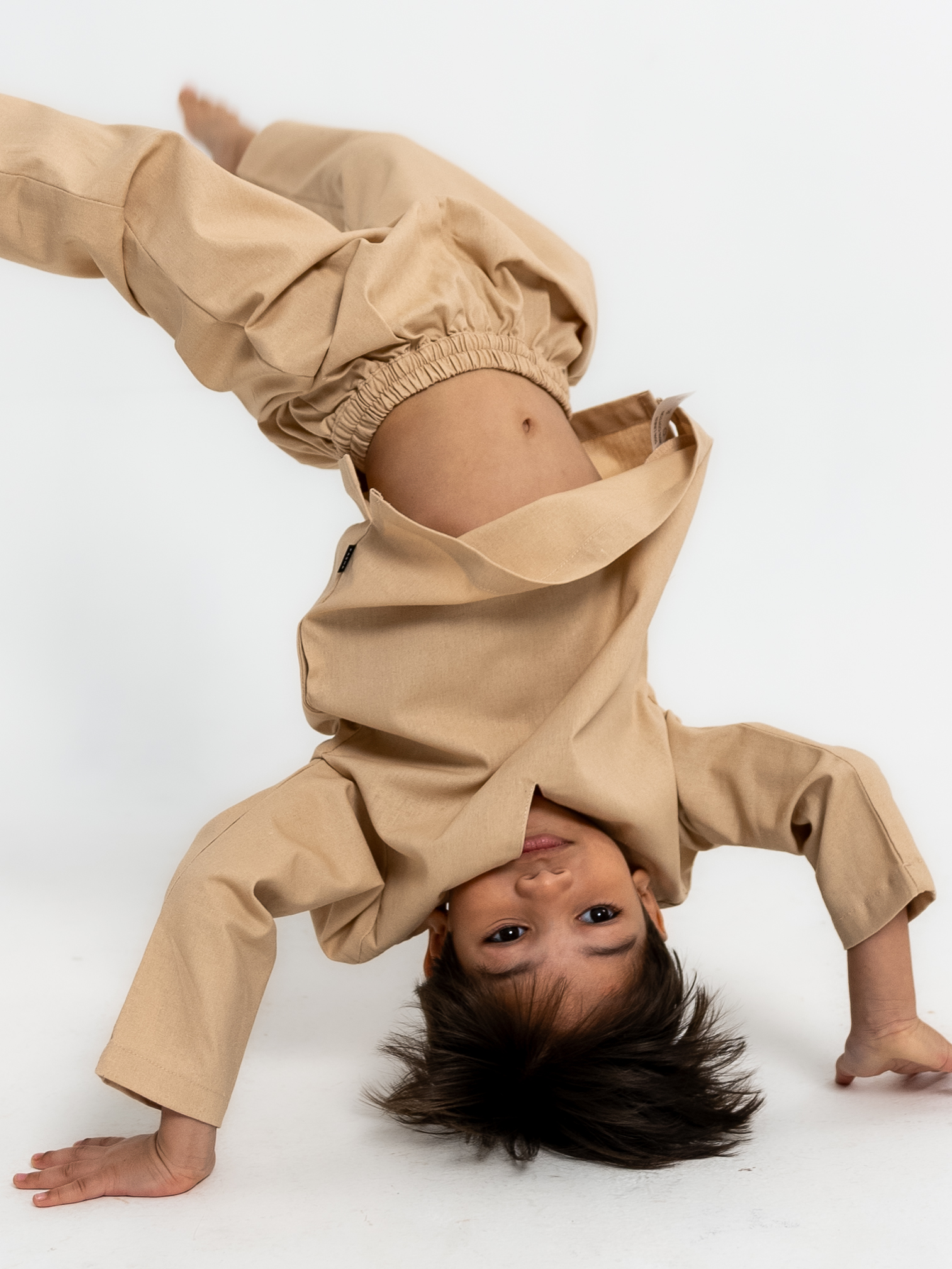 Tailored for little explorers — airy linen-cotton, soft seams, and easy movement. Minimalist lines meet everyday comfort so they look sharp and feel free.